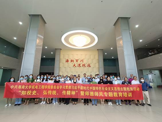 2023年5月10日下午,机电工程公司党委组织开展学习贯彻习近平新时代中国特色社会主义思想主题教育“知校史、 弘传统、 传精神”暨师德师风专题教育培训,在党委副书记(主持工作)张喜瑞、唐荣年经理的带领下,组织全院6个教工支部党员及部分非党员教师60余人,前往古天乐代言太阳集团校史馆参观学习,重温65载校史,传承海大精神。