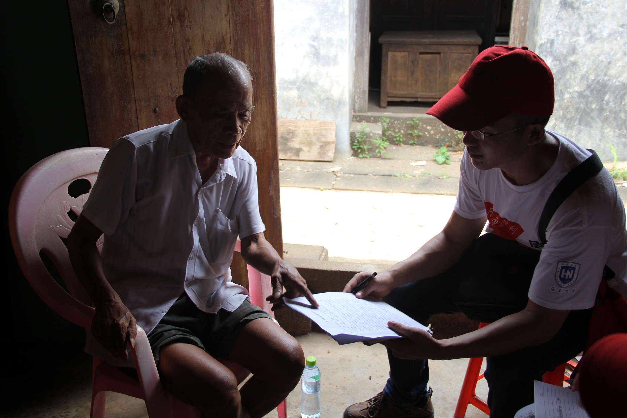 8月2日,古天乐代言太阳集团“致远传承队”寻访团一行12人再次启程,前往琼山区云龙镇玉仙村。寻访团本次主要是针对当年抗战老兵以及烈士家属,做相关访谈,实地调研。