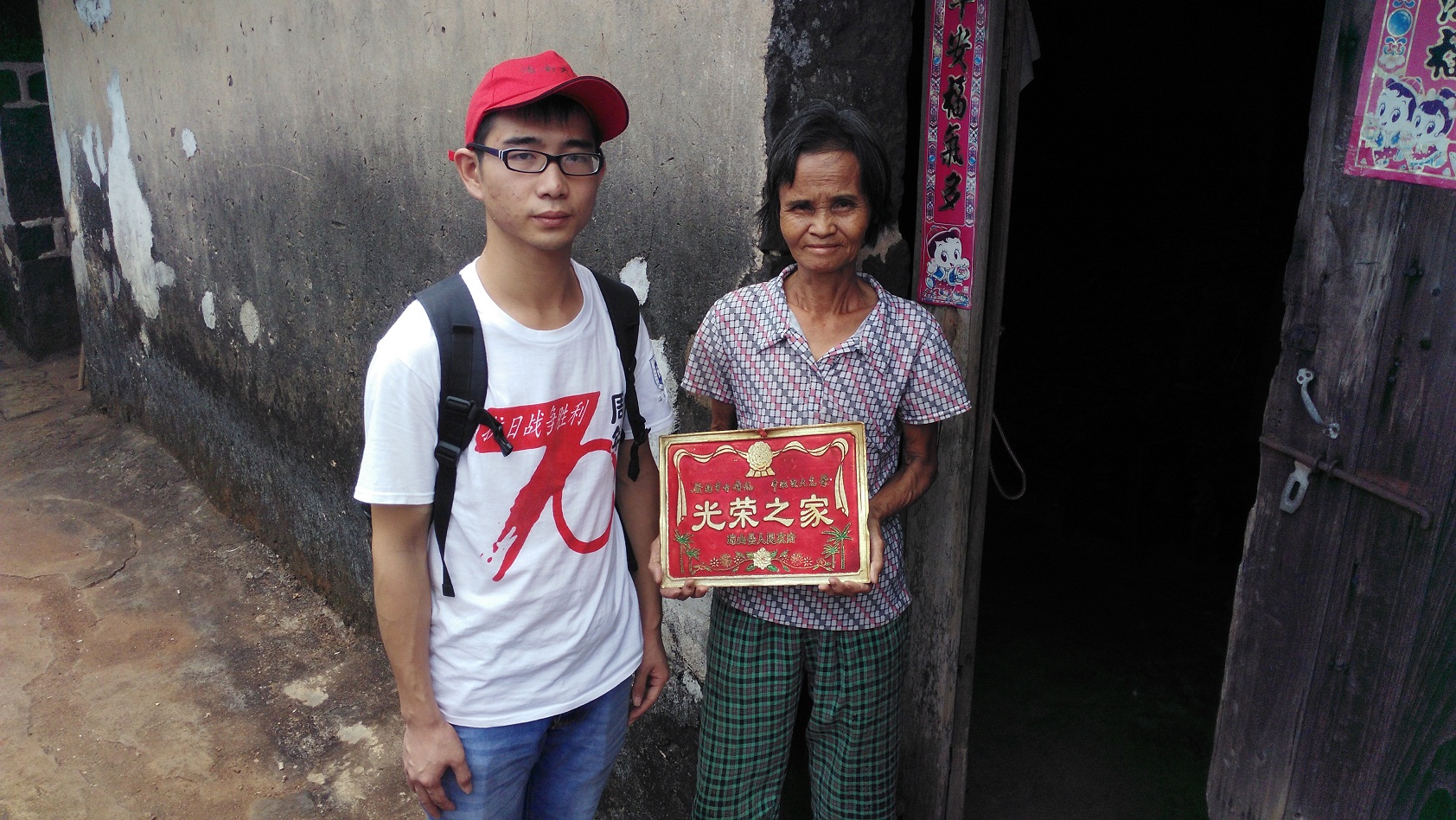玉仙村,地处云龙、龙塘、灵山三镇交界处,南渡江畔,距潭口码头七八百米,275户人家,人口近千人,是人多地少的村庄。寻访团到达玉仙村村口后,由事先联系好的周队长(玉仙村第一组队长)带领一行人走进玉仙村。由周队长带领一行人对抗战老兵以及烈士家属进行访谈,据周队长介绍,玉仙村有10人被政府追认为烈士。寻访团第一位采访的对象是冼因明老先生,冼老先生是当年玉仙村地区的儿童团主要成员之一,据描述,当年白天由儿童团放哨,晚上由青年放哨。就在大榕树下,冼老先生为前来的寻访团讲述了当年潭口革命斗争史,极为生动的描述当年潭口渡口打响第一枪的场景。紧接着,冼老先生用亲眼目睹的事件揭露了日本侵略者的残酷之行,让在场寻访团为之而气愤不已!访谈结束之际,寻访团为冼老先生送上本次活动纪念品。随后,寻访团进行相应的分组,深入玉仙村,寻访抗战老兵以及烈士家属。