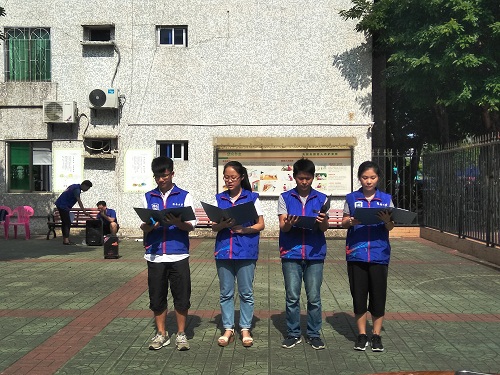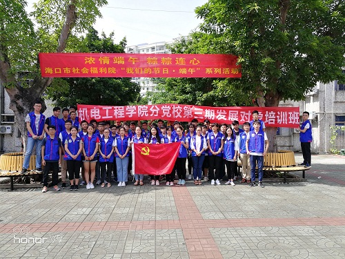 在福利院里,发展对象们早早在广场上布置会场。之后,他们为老人们切水果和制作了粽子。在老人们品尝美食之际,一部分发展对象们为老人们表演了精彩绝伦的节目,赢得了老人们阵阵喝彩声。另外一部分人还协助工作人员完成了相关活动。表演之后,他们打扫了会场。活动结束之后,全体发展对象以及全体工作人员进行了拍照留念。