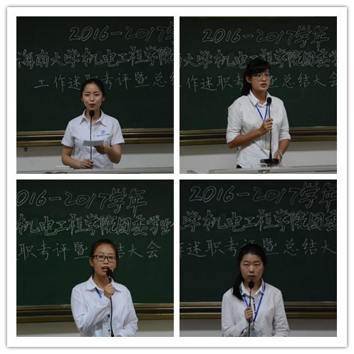 按照抽签所得顺序,12个部门共26个部长依次上台进行述职答辩。各部长就一年来部门工作情况进行汇报。报告紧紧围绕2016年度工作的特色、不足,以及今后发展方向等方面展开,在概述部门职能、简介部门工作流程的同时,各部长也表达自身的收获与对未来的展望。述职答辩结束,与会评委根据评分标则,进行打分评定。