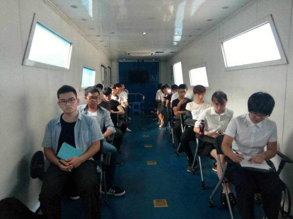 上午9:00培训会正式开始,培训讲师王鲁鹏讲述了目前国内外电梯行业的状况,并分析了国内电梯行业面临的问题,如专业人士缺乏等。随后,王鲁鹏讲师通过视频介绍了蒂森克虏伯公司的概况向同学们展示了蒂森克虏伯公司的一系列产品和公司的经典项目,以做服务于大众、安全可靠的创新品牌和员工独立的独特魅力企业文化深受到大家的赞许。鲁鹏讲师从安全装置的设置调整、电梯缓冲器技术、电梯调速器技术、电梯安全钳技术四个方面对电梯的专业知识讲解,其中以电梯安全钳技术的八大安全部件尤为重要。培训中,借助向同学们提问“如何做到两个轿厢,一个电梯井,无堵车”的问题,他向我们展示了蒂森克虏伯公司对这一问题解决的构想与实施。王讲师带同学们参观培训车的同时用电梯的相关模型为同学们进行更深入的讲解。参观完毕后,王鲁鹏讲师针对同学的疑问进行解答,培训会现场气氛一片和谐。
