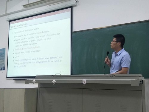 随后,优秀毕业生代表一一发言,王居飞向大家分享了自己研究生三年的经历,并即兴作诗一首,希望大家作为机电人应该珍惜时间好好学习。陈凯通过纯英文PPT向大家讲解了如何写出一篇高质量的论文,并对论文搜集、写作、投稿过程中的常见问题做了详细解答。王自强则从学习态度的角度向大家分享了自己的科研心得,并通过自身经历向大家讲解了考博过程与经验,让我们对考博有了更清晰的了解。