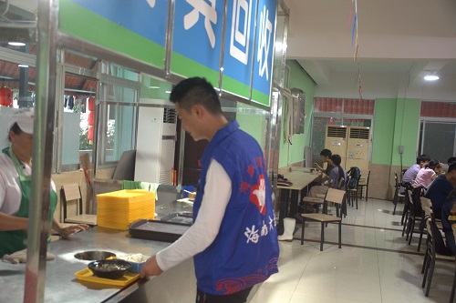 下午6点,青协干部们带领志愿者在各自负责的食堂里进行文明就餐引导。就餐高峰期,偌大的食堂也变得拥挤不堪,因为志愿者们的文明引导,拥挤的食堂变得秩序井然。志愿者们在别人吃饭时一直站守,他们的协助大大提高了同学们的就餐效率。下午七点,青协干部们带领志愿者在11至19栋宿舍楼进行校园清扫志愿活动,在志愿者们的辛勤努力下,散落的生活垃圾都一扫而光。