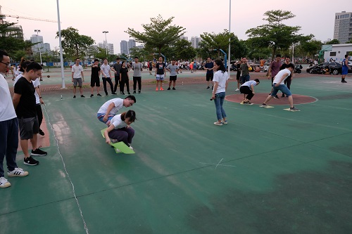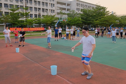 活动伊始,由主持人施晓佳宣读活动的流程以及活动项目,裁判宣布活动规则,在现场人员熟悉好规则之后,分为A、B、C、D四组进行本次活动。本次活动分为5个比赛项目,包括:热身小游戏(知识竞答和听歌识曲)、接力运水、障碍接力、搭桥过河、终极躲避球,每个项目结束后进行打分,最终按照5个项目累计最高分依次排名。