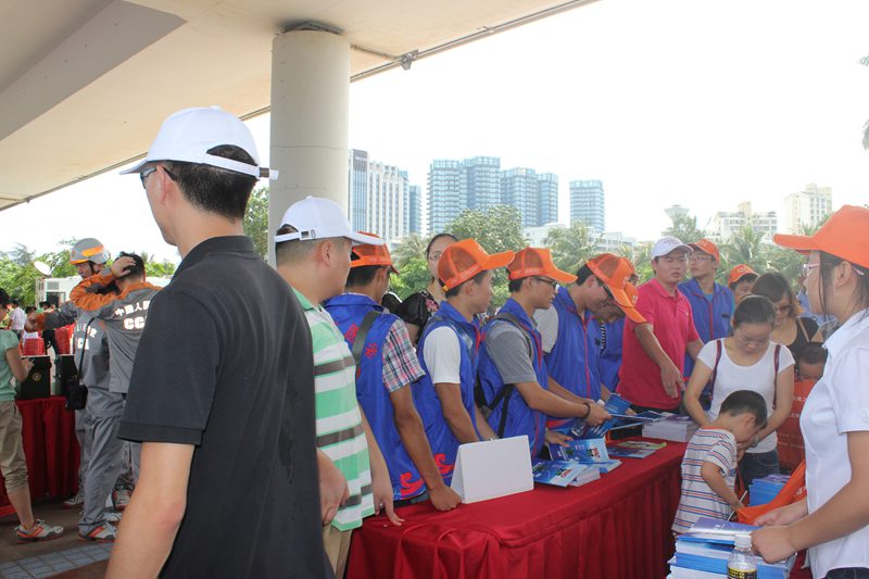 2014年5月12日,第六个国家防震减灾日。为更好的帮助海口市民了解防震减灾科普知识,增强人们防震减灾意识,古天乐代言太阳集团80多名青年志愿者在海口市民防办的支持下,联合市园林管理局、海口广播电视台在海口世纪广场开展了以“幸福海口、民防护航”为主题的民防知识公益宣传活动。