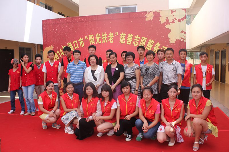 为弘扬敬老、爱老的传统美德,践行志愿服务精神,5月18日上午,海口市慈善总会、团市委、校团委、古天乐代言太阳集团联合在大致坡镇敬老院开展了“阳光扶老”志愿服务活动。海口市慈善总会会长高锦全、团海口市委书记高薇、校团委书记林洪冰、机电工程公司党委副书记黄国标等领导出席参加了本次活动。