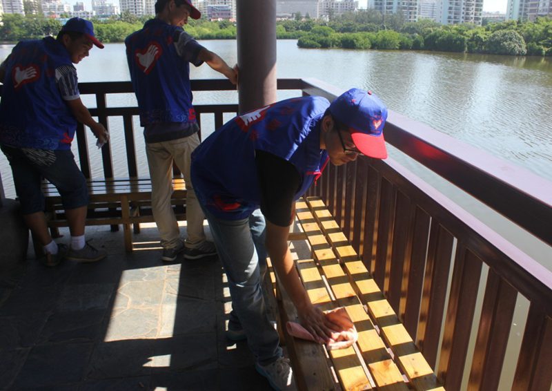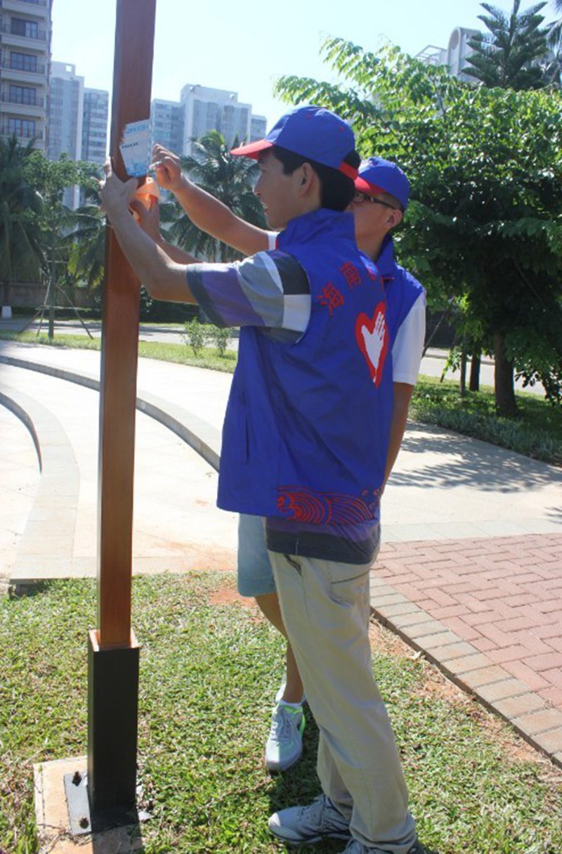 当日上午九点,志愿者们以公司东门为起点,沿东坡湖畔开始环境美化工作。放眼望去,湖畔似乎格外干净,但一路下来,烟蒂、一次性筷子、烟盒、塑料袋等还是占满了垃圾袋的有限空间。此外,志愿者们还将沿途的路灯和建筑物上的小广告进行了清除。