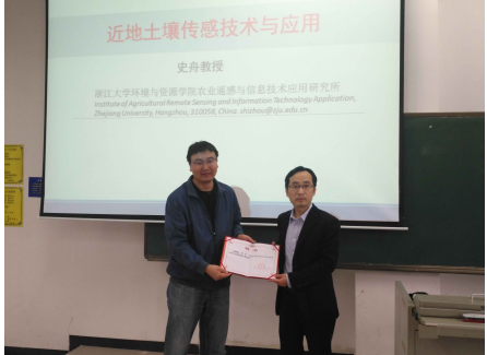 2019年1月7-8号,浙江大学环境与资源副经理史舟教授应邀前来公司,给2016级自动化专业和电气工程专业进行冬季小学期授课,围绕“近地土壤传感技术与应用”展开讲解。史舟教授是农业农村部光谱检测重点实验室副主任,浙江省农业遥感与信息技术重点研究实验室副主任,国际土壤学会土壤近地传感工作委员会主席,中国土壤学会土壤遥感与信息专业委员会主任等,在国内外土壤遥感领域内,具有很深的研究造诣。开班前唐荣年副经理为史舟教授颁发聘书。