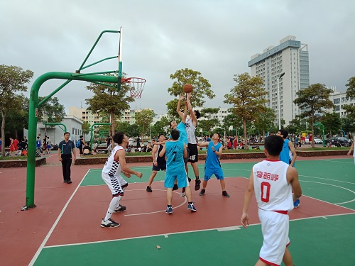 比赛阵营分为教工队与2016级电气专业。队伴随着哨声,比赛正式开始,双方队员都放慢了节奏,随着比赛气氛渐趋火热,2016电气的队员们率先展开了攻势,投进了比赛的第一个三分球,全场欢呼。与此同时老师们也不甘示弱,以迅雷不及掩耳之势投进了一个三分球,此后,双方便你追我赶,以激烈形势结束了上半场的比拼。