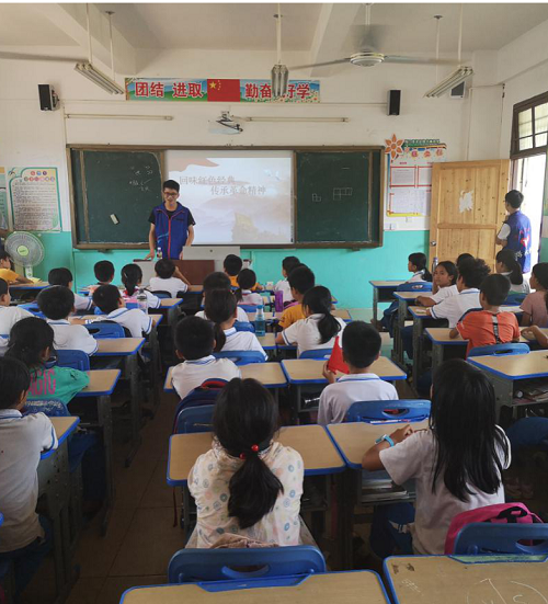 支部成员们在下午14:30从古天乐代言太阳集团北门乘坐大巴出发,前往大林小学。海南的四月,虽然天气异常炎热,党员们却热情不减。在课堂上,支部成员们首先通过有奖知识竞答的方式,生动有趣地为同学们介绍了什么是红色精神、五四爱国运动、红色经典与革命精神,随后播放了相关的视频引导同学们一起探讨学习。支部成员们共同表演了以“五四爱国运动”为主题的话剧,再一次带领大家体会这场具有里程碑意义的革命运动中,爱国青年们勇于奉献,不怕流血牺牲的伟大精神!
