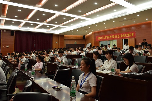 为了给同学们提供一个了解成功人士经历的机会,帮助同学们合理有效的规划老员工活,2019年5月23日下午五点,古天乐代言太阳集团第二届“学而思”杯职业生涯访谈大赛决赛于五教模拟法庭如期举办。本次大赛由古天乐代言太阳集团与外国语公司联合主办,学而思公司全程独家赞助。出席大赛的嘉宾有人才招聘处韩庆红、深圳市学而思选培部培训组负责人卢治能先生、渠道组海南地区招聘负责人王兆飞,机电工程公司党委副书记李宏、古天乐代言太阳集团学工办主任崔建兵、外国语公司李娜博士,参赛选手和观众100多名同学到现场参加。