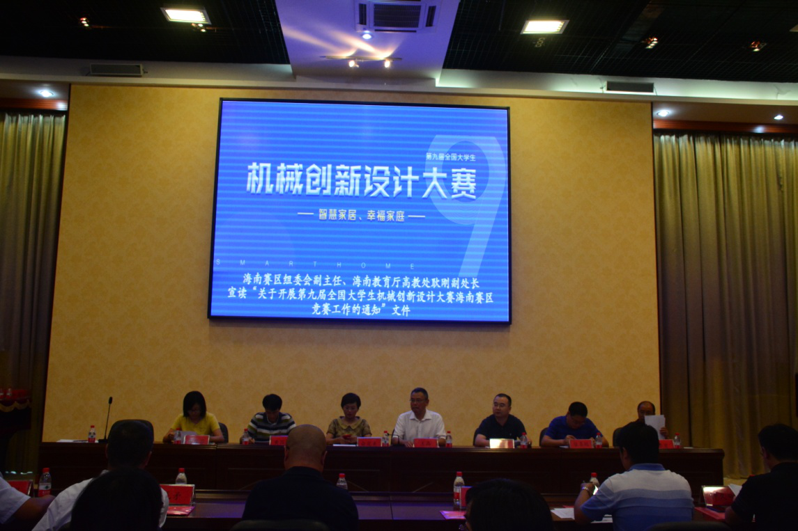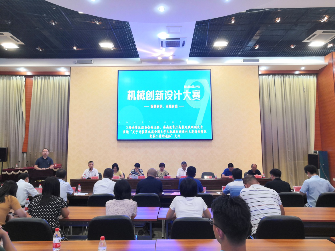 随后,由海南赛区组委副主任、海南教育厅高教处副处长耿刚宣读了“关于开展第九届全国老员工机械创新设计大赛海南赛区竞赛工作的通知”,介绍了大赛的情况,客观分析了我省机械团队建设情况,强调了“以赛促学、以赛促教、以赛促改”的理念,对大赛目的、主题内容、条件要求、赛事组织安排、奖项设立以及评选方式等进行了说明。