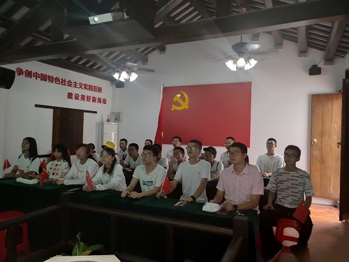 机械系员工党支部从古天乐代言太阳集团正南门前出发,向西行进,途径人民大道,人民桥,徒步到中共琼崖第一次代表大会旧址,用时约2小时。同学们整齐有序,踏着欢快的步伐,有说有笑的走着。途中,支部副书记王开兴鼓励同学们:“我们要像前辈们那样,提高自己的坚强意志,大力发扬中国共产党党员的优秀品质!”