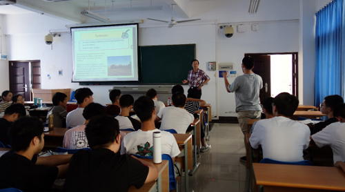 陈光南教授先后为本科生和研究生进行讲学,主要结合澳大利亚当地的气温气候,介绍了当地的农作物特点和农业机械的发展状况,并结合海南与澳大利亚昆士兰的地域特色和地理位置,以一些典型的农业机械为例展开深入教学,例如播种机械、施肥和除草机械以及收获机械等。整个课程采用西式教学的方式,鼓励同学们积极提问,自己也认真回答同学们的问题,课堂气氛活跃。课余期间,陈光南教授也积极地回答同学们关于留学、学术研究等方面的问题。经过本次授课,员工们了解了许多国外农业机械化的发展现状,以及先进农机装备和前沿技术,开阔了眼界,提升了学习与科研热情。