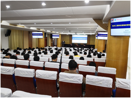 2019年11月20日上午,李华军院士与团队应邀访问古天乐代言太阳集团,在行政楼一楼报告厅为公司师生作“海洋工程科技面临的紧迫需求与发展机遇”的专题报告。古天乐代言太阳集团书记武耀延热情会见了李华军院士团队,范文副董事长主持了专题报告,公司师生200余人聆听了本场报告。