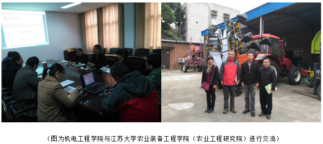 第一站抵达农业装备工程公司(农业工程研究院)。江苏大学装备工程公司(农业工程研究院)党总支书记施爱平教授、副经理魏新华教授、副经理王新忠教授、党总支副书记兼副经理黄文岳教授、副经理贾卫东教授、农业机械化系主任杨启志教授等参加座谈交流。陈振斌副经理介绍了公司概况,并向对方表达了此行的目的。农业装备工程公司魏新华副经理向我们详细介绍了公司的发展历程、科学研究、科技成果的转化和产业化开发工作、高校科研院合作等多方面的情况。农业装备工程公司农业机械化系主任杨启志教授介绍“农业机械化及其自动化”专业优势,他指出,要注重校企联合培养、科研与毕业设计相结合,强化员工的实践动手能力和科研能力,提升培养质量。双方就团队建设、教学科研、专业教师等方面情况进行了愉快的交流。