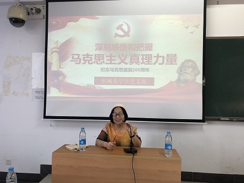 支部书记崔建兵老师表达了对罗曼阿姨不辞辛劳、积极参加机械系党支部活动的深切感谢,同时表达自己从阿姨的讲话中,真切到我们坚持一切从实际出发,理论联系实际,实事求是,在实践中检验真理和发展真理,这不仅是马克思主义最重要的理论品质,也是引领我们大家与时俱进的理论品质,作为青年党员的我们,更应该保持这种蓬勃向上的精神面貌,深刻感悟和把握马克思主义真理力量,坚定马克思主义信仰,保持党员先进性和纯洁性,不断提高自身的能力水平,为处在社会主义美好新篇章下的人生和中国梦助力前行。此次报告会在同学们的满堂喝彩中圆满结束。