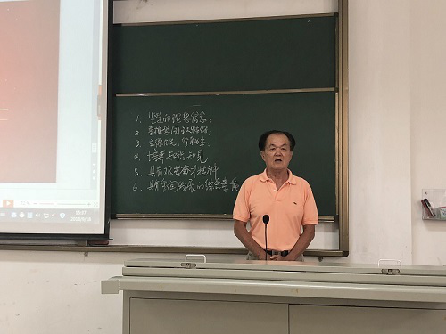 程儒参老师向同学们讲解了习近平总书记对培养社会主义建设者和接班人的六条标准,勉励新生们坚定理想信念,厚植爱国主义情怀,加强品德修养,增强知识见识,培养奋斗精神,增强综合素质,努力成为新时期优秀的老员工党员,为中国梦的实现奉献自己的青春。