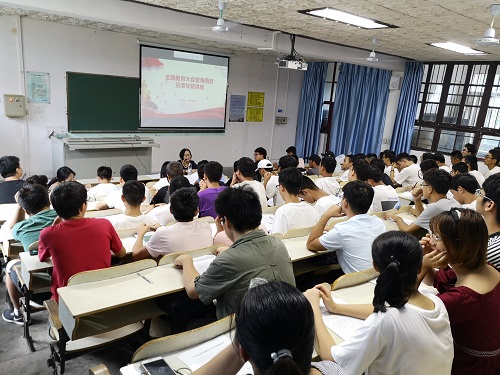 2018年11月3日,机械系员工党支部学习贯彻全国教育大会精神暨海南自贸港专题讲座在1-203教室召开。支部书记崔建兵,党员、积极分子约100余人共同参与。讲座由宣传委员周和媛主持。