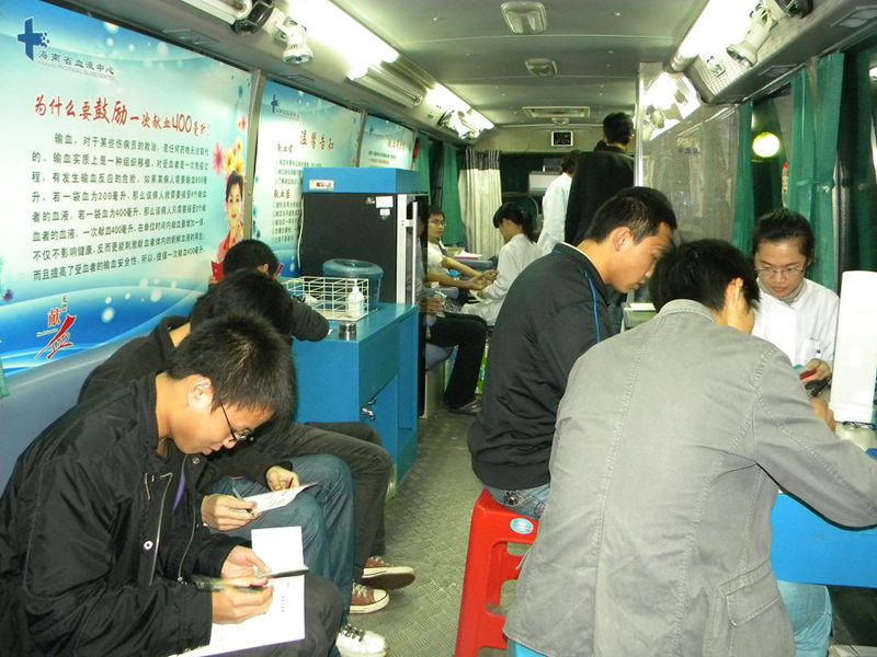 此次活动从当天下午4:30开始,一直持续到晚上9:00。整个活动现场热闹而有序,每个步骤都有条不紊的进行着。活动期间,共有50多名同学先后参加了献血活动,其中包括20多名员工党员同志。