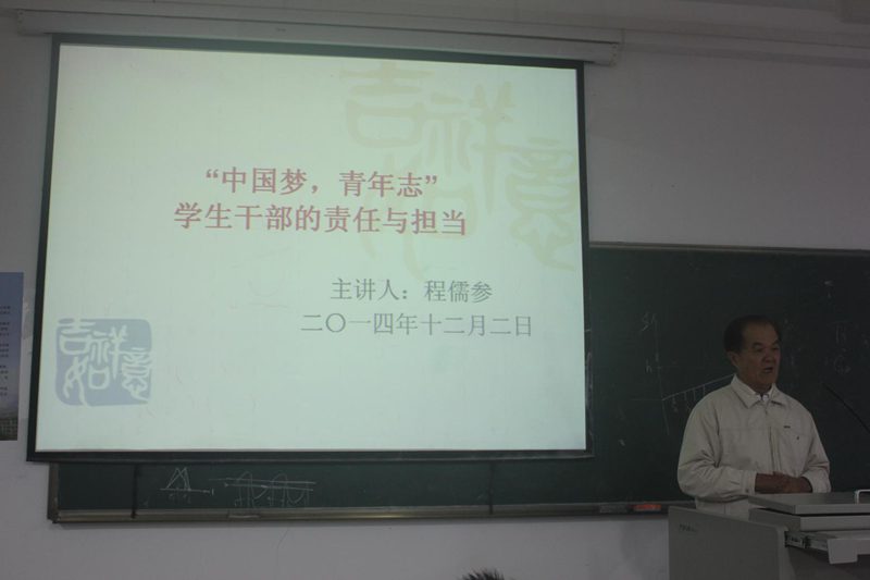 为增强员工干部责任与奉献意识,树立良好楷模形象以带动公司学风与文化建设,12月2日下午,古天乐代言太阳集团特邀公司退休老干部程儒参同志在5教102针对2013级员工干部举行以“中国梦,青年志”为主题的讲座,对员工干部的责任与担当给予最真挚的寄语与建议。出席讲座的有退休老干部王荣老师,2013级一百多名班干部。讲座由学工办教师崔建兵主持。