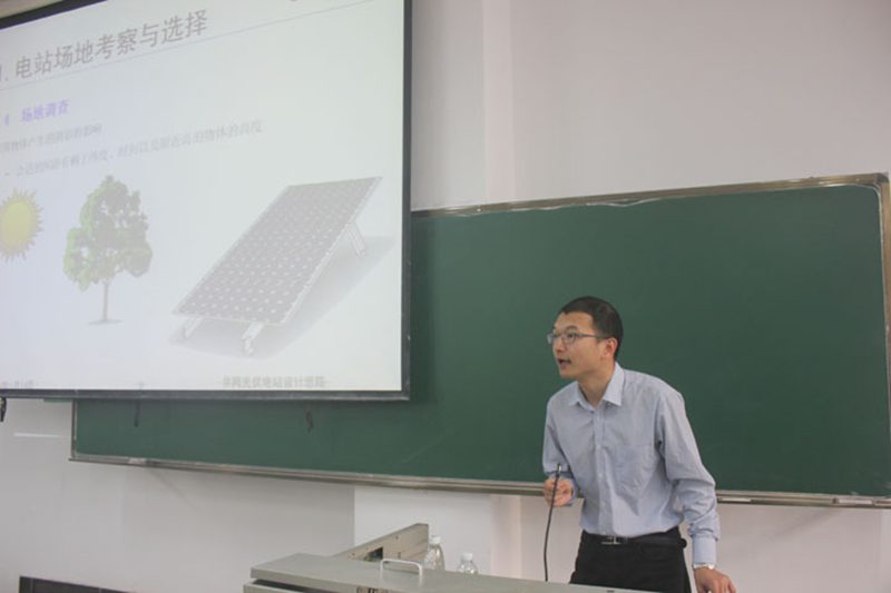 在为期2天的授课中,孙博士全面系统地讲授了以“光伏电站设计、建设与运行维护”为主题的课程,主要对象是2012级电气工程及其自动化本科专业的员工,部分教师和研究生也聆听了讲座。作为在光伏电站方面拥有十余年设计、管理经验的专家,孙博士主要从“并网光伏电站设计思路”、“光伏电站构成及器件选型”、“光伏电站故障分析与运维管理”和“并网光伏电站全生命周期收益保障”四个方面向同学们进行了讲解。授课过程中,孙博士结合自己丰富的工程设计与管理经验,用幽默的语言与真挚的情感深深感染了同学,精彩的授课赢得了在座师生们的阵阵掌声。
