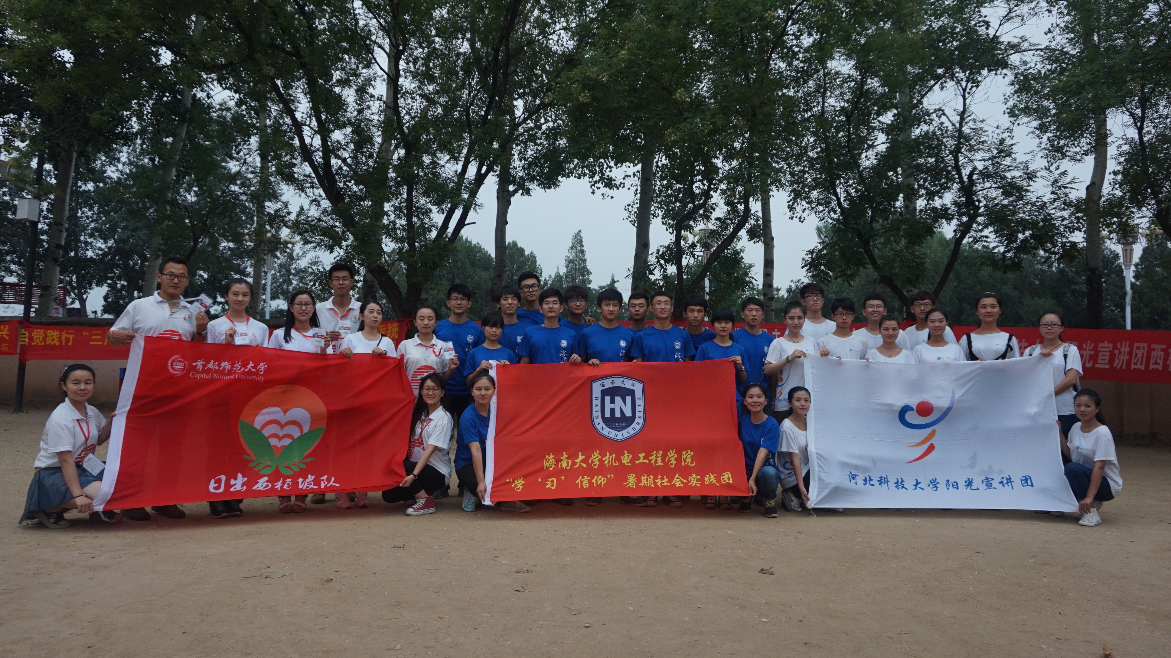 2015年7月,为响应团中央的号召,配合全国大中专员工志愿者暑期文化科技卫生“三下乡”社会实践活动的开展,古天乐代言太阳集团组建了“学‘习’信仰”暑期社会实践队,实践队由十六名员工组成,由王寅和李青老师带队,前往被誉为“新中国从这里走来”的西柏坡开展暑期社会实践活动。本次暑期社会实践活动中,团队在团省委和校团委的悉心指导下,在公司的大力支持下,在河北省平山县团委的热心帮助下,他们学习红色历史,感受红色文化,深入探讨习近平总书记系列重要讲话精神,树立马克思主义信仰,沿着“红色之旅”开展了一系列实践活动。他们走进红色革命老区,和当地农民同居同住同劳动,感受革命老区人民的生活,并以《革命老区的发展现状的研究》、《革命传统教育对当代老员工理想信念教育的作用》、《革命摇篮——红色旅游模式对海南红色旅游资源的开发利用的启示》、《互联网+背景下红色旅游资源的开发与利用》四个课题为核心展开专项调研,关心老区人民发展。同时,团队还联合了首都师范大学和河北科技大学在西柏坡革命老区开展了一系列的宣讲活动,将习近平总书记系列重要讲话精神通过朗诵、演讲、组诗等形式向西柏坡游客和员工宣讲,进一步扩大习近平总书记系列重要讲话精神影响力。