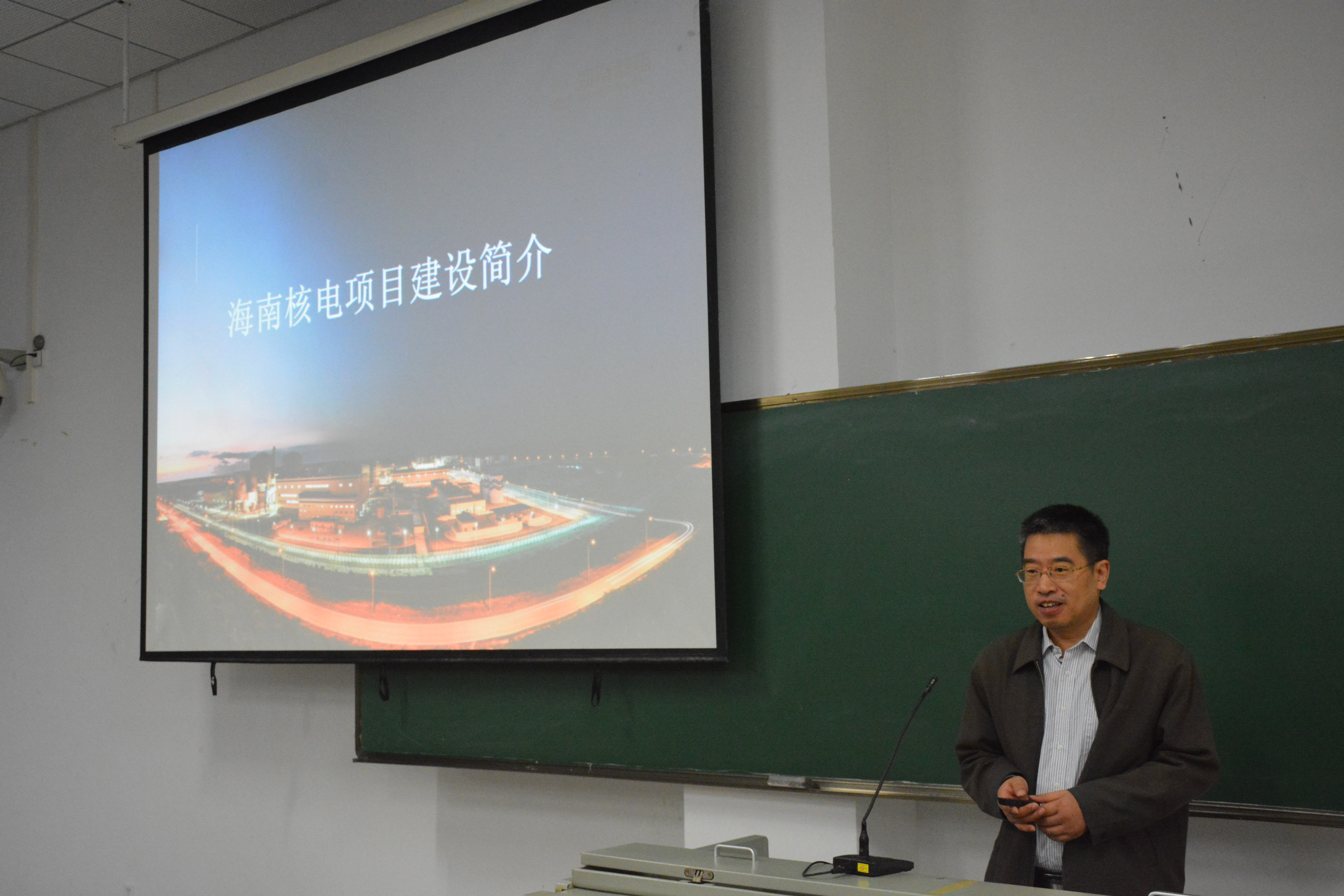 讲座围绕“核电原理与安全问题”。其中,吴美景副总以“核电发展和安全”为题,为2013级电气工程及其自动化和自动化本科专业的员工讲授了核电发展和安全方面的知识,主要包括:核能发电及中国核电、核电的安全保障机制、历史上的核灾难和中国核电未来的发展趋势及预测等方面。陈建新处长则结合海南实际,讲解了海南的核电发展状况,以及海南昌江核电的选址、建设和商运发电等各方面知识。王永明处长则从专业的角度对核能从矿石到铀棒的全流程生产过程进行详细介绍,并对反应堆的热工物理特性进行全面解读。讲座使同学们从核电原理、建设、运行和安全管理等方面对核电技术有了更深入地认识,激励了他们对国家核事业的支持,消除了对核电安全的顾虑。讲座期间,同学们精神饱满,不时响起热烈的钟声。