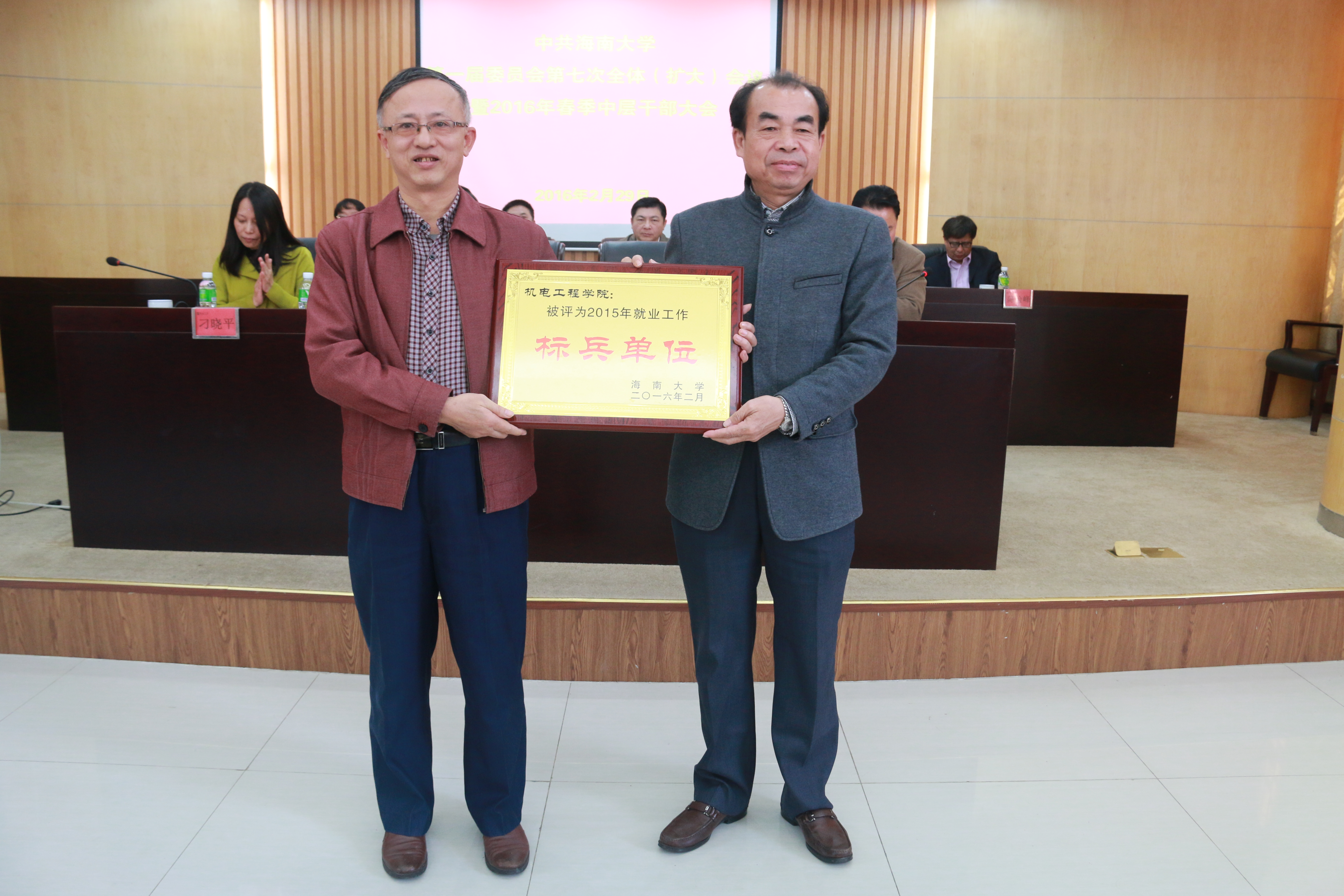 公司党委刘康德书记为公司颁发“2015年就业标兵单位”称号