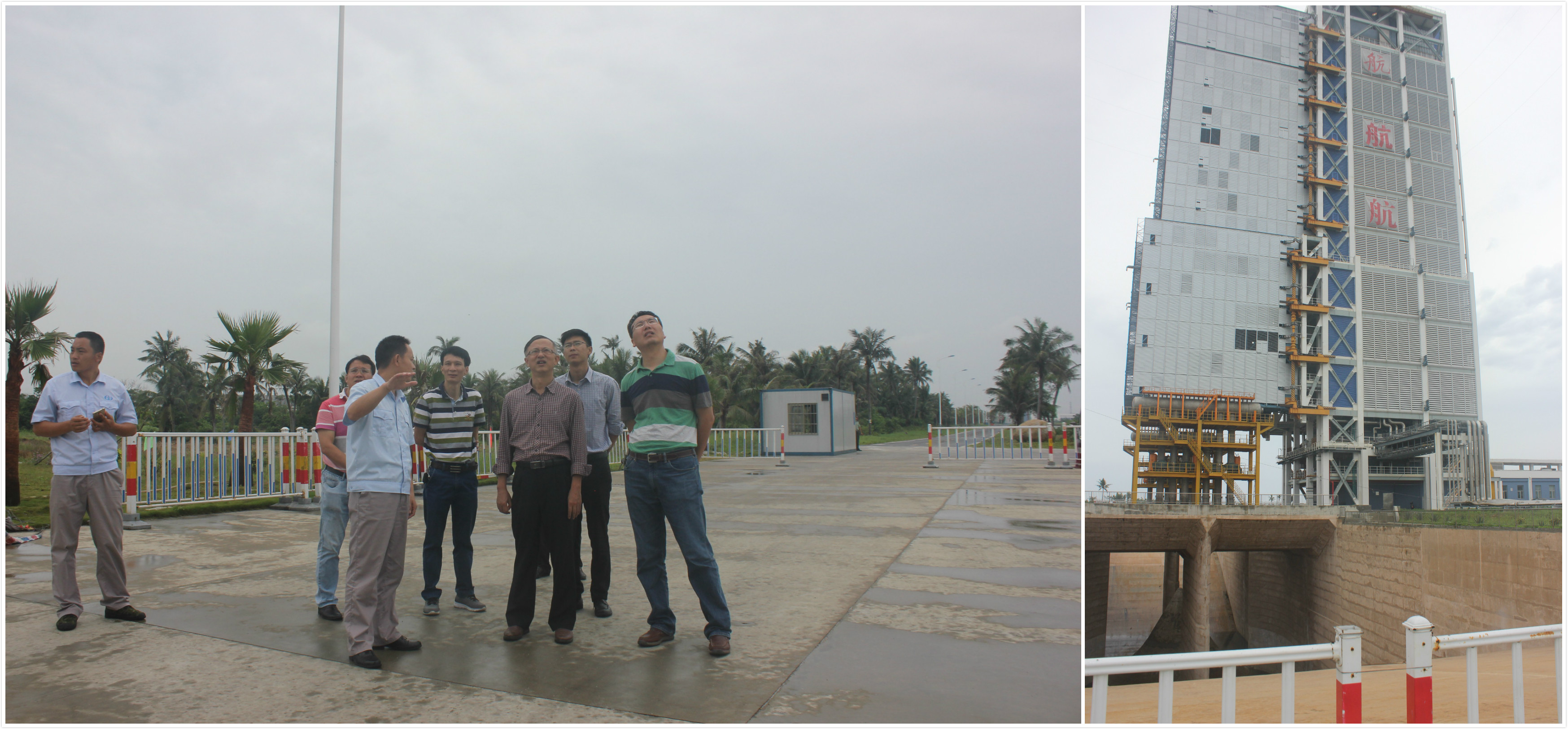 椰风海韵,风景旖旎。经过两个多小时的车程,翁绍捷经理一行到达文昌航天发射中心,在工作人员的陪同下参观了文昌航天发射场指挥控制中心、发射塔以及移动发射平台。发射站政委鲁建为我们详细介绍了整个文昌航天发射的具体情况,发射塔采用了国际最新的设计理念和最新技术,深凹到地下三层楼高的导流槽技术含量非常高,承受着火箭发射时高温、高速、高压的燃气流的冲刷,并将有毒气体分流,排到远离发射塔的空间,从而保护火箭周围的建筑设施。针对鲁建政委谈到发射塔及避雷塔材料易腐蚀情况,翁绍捷经理表示公司有博士专门从事机械材料腐蚀性研究,愿加强与文昌航天发射中心的交流合作,并邀请鲁建政委冬季小学期到公司授课。
