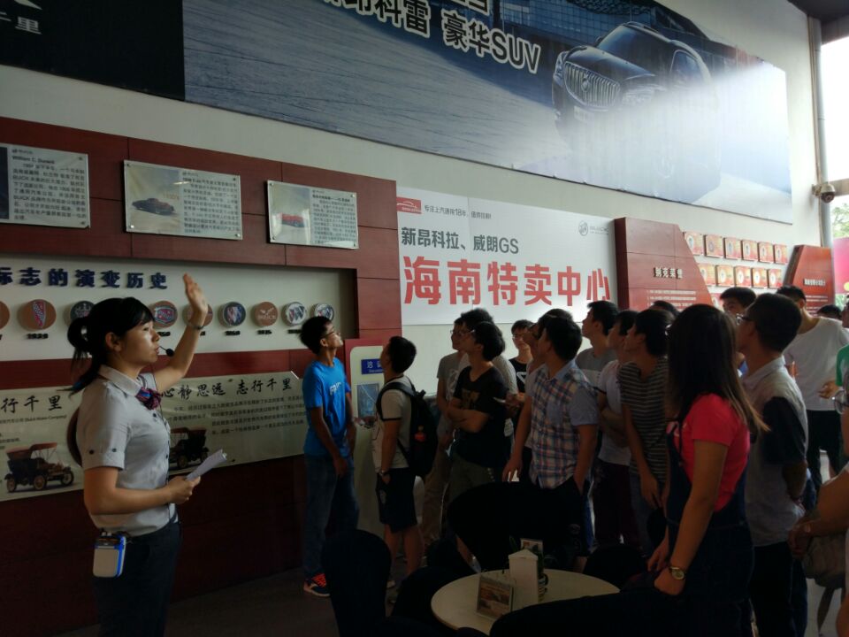 公司的工作人员为同学们热情地讲解了该公司别克、雪佛兰汽车4S店的企业文化、工作岗位和发展前景,带领同学们依次参观了维修车间、喷漆车间、钣金车间、销售前台和展厅布置,并与同学们分享了企业创业历程和市场盈利点,使同学们对“汽车后市场”的定位有了更加深入的认识。每每来到一处地方,工作人员都会停下脚步,耐心而详细地向同学们介绍相关工作常识与注意事项。随后,同学们自主参观,了解企业文化、未来发展趋势及用人选人方式,加深了对公司的了解。