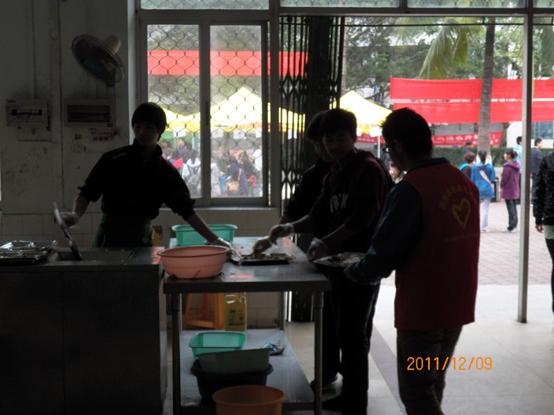 12月9日中午12:00,20余名志愿者前往活动地点, 按照活动安排,志愿服务队分为两个小组,分别展开“文明用餐”与“卫生清洁”两项活动。活动期间,第一组志愿者对在二食堂就餐的同学们不遵守食堂用餐规则,用餐后不自觉回收餐盘的不文明举动进行劝导,并呼吁广老员工在文明之墙留下自己的承诺。于此同时,第二组志愿者对三号教学楼的211和212教室进行了彻底的清扫,包括地面清洁、桌椅清洁等,志愿者们分工合理、配合默契,最终为莘莘学子们留下了干净整洁清新的211和212教室。