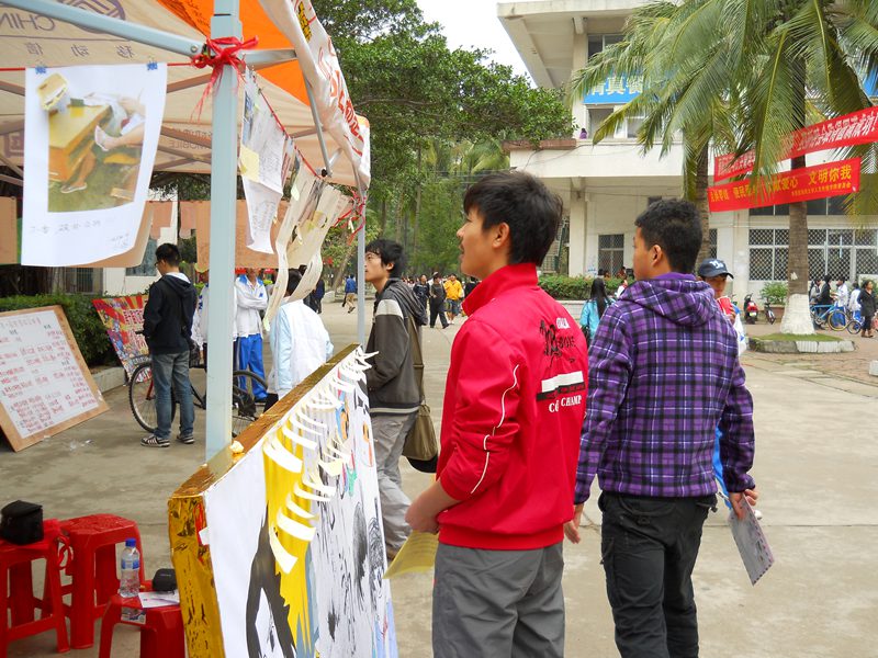 参赛作品展现了垃圾、废物随处乱扔的不文明片段以及同学们自发组织清理校园的精彩瞬间,还有参赛者为鼓励大家与文明牵手自主创作的各类漫画。展出当日,活动得到了广大师生的热情响应,观众积极踊跃地参与投票,同学们对校内文明与不文明的行为进行了激烈的探讨。大家纷纷表示,每个老员工都应该与文明同行,告别不文明现象,做一个有涵养有素质的公民。最终,大赛分别评选出DV、图片、漫画这三类作品的一二三等奖和两个最佳组织奖。