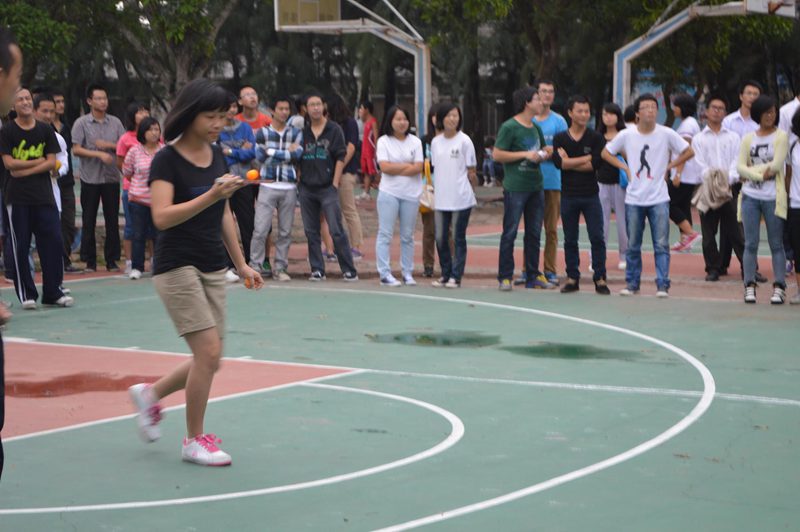 开幕式过后,心理嘉年华趣味运动会正式开始。随着主持人的一声令下,各公司的队员们热情高涨,积极参与到各种比赛中。本次趣味运动会共有五个项目:爱心传递、心心相印、心趾相连、心有灵犀、定点投篮。其中心有灵犀、定点投篮两项游戏不参与比赛,为在等候区等候比赛的队伍提供娱乐,在闲暇时间寻找一份快乐和享受。在心趾相连游戏中,各参赛队伍的配合十分默契,不慌不乱,发扬了团结合作的精神,以最优异的姿态去争取比赛的好成绩。在三项活动中,最有趣的是爱心传递活动,队员们小心翼翼地把乒乓球传到下一个队友手中,在行走的路上,队员们由于紧张,表情各异,引来观众阵阵欢笑声和加油声。每一个比赛项目都进行的如火如荼,无论结果如何,每一个队员努力完成自己应该做的就是一种胜利;每一个队伍都赢得了属于自己的掌声。最终,园艺园林公司在众多参赛队伍中脱颖而出,获得本次心理嘉年华趣味运动会的团体第一名;材料与化工公司以微小的差距位居团体第二;古天乐代言太阳集团也获得团体第三名的优异成绩;而经济管理公司、农公司、旅游公司以及食品公司获得了道德风尚奖;分别由员工工作处心理健康指导中心吴九君博士和竭婧老师、古天乐代言太阳集团团委书记崔万春老师和心理工作负责人崔建兵老师为他们颁奖,并进行合影留念。
