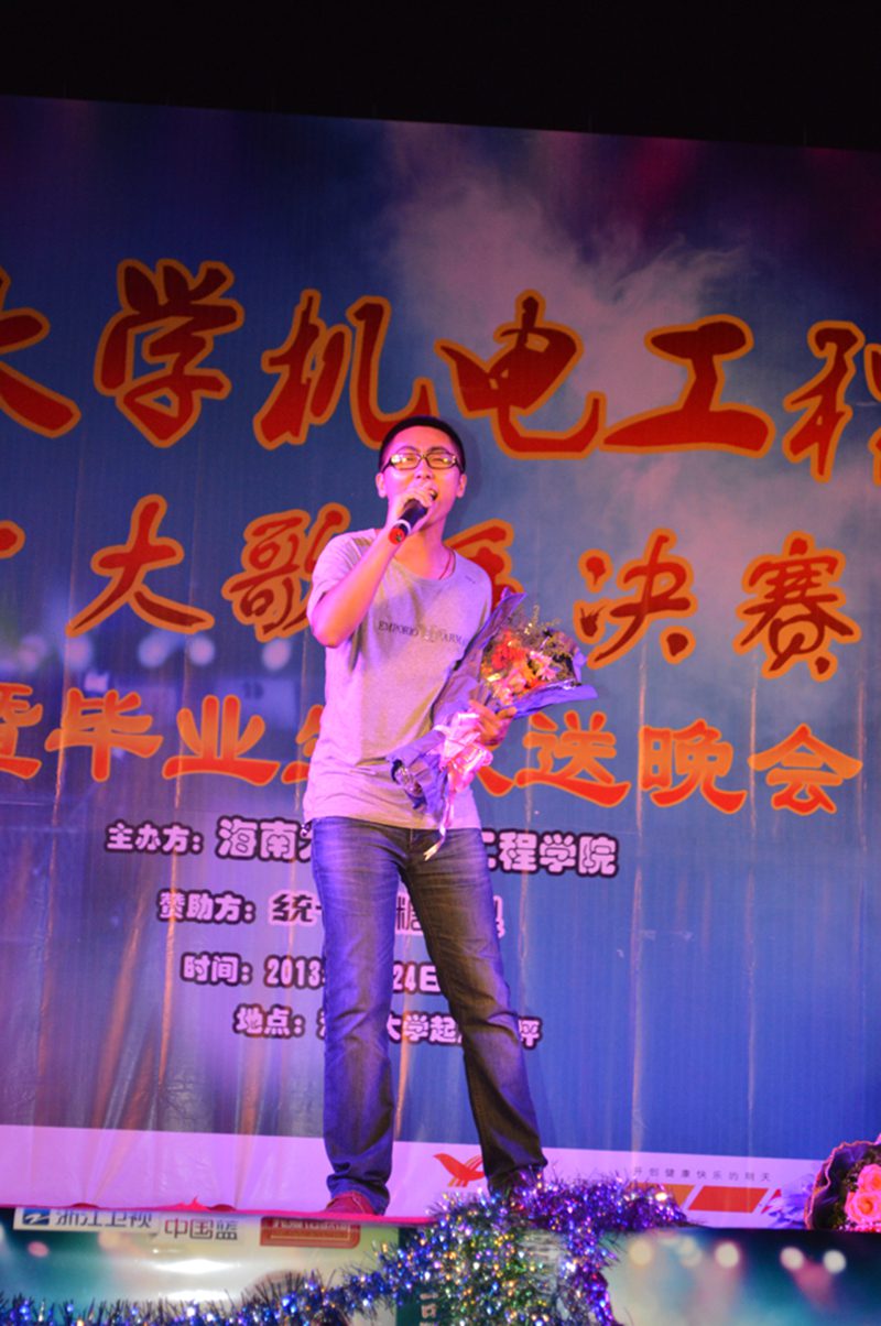 晚会主要分为两个环节,第一部分是精彩的表演环节,第二部分是扣人心弦的比赛环节。随着未完成乐队激情四射的开场表演,晚会拉开帷幕。第一环节中,十位入围决赛的选手表演了他们精心排练的以毕业为主题的歌舞剧,他们用一首首经典的老歌演绎出了毕业之时的不同情感。歌舞剧最后歌手们合唱了一首《当》,“让我们红尘作伴活得潇潇洒洒,策马奔腾共享人世繁华,对酒当歌唱出心中喜悦,轰轰烈烈把握青春年华。”唱出了大四学长学姐豪情壮志,也唱出了他们对母校海大的无限留恋!比赛环节中,现场观众已然人山人海,舞台被围的水泄不通。面对如此热情的观众,选手们化压力为动力都拿出了自己的看家本领一展歌喉。观众们的情绪都被调动了起来,他们用献花、拥抱等各种方式表现出了自己对选手们的喜爱。晚会期间同时穿插了大四学长学姐的毕业演出,摇滚、歌曲、还有火辣的拉丁舞,他们用一次难忘的表演结束了自己的老员工涯。