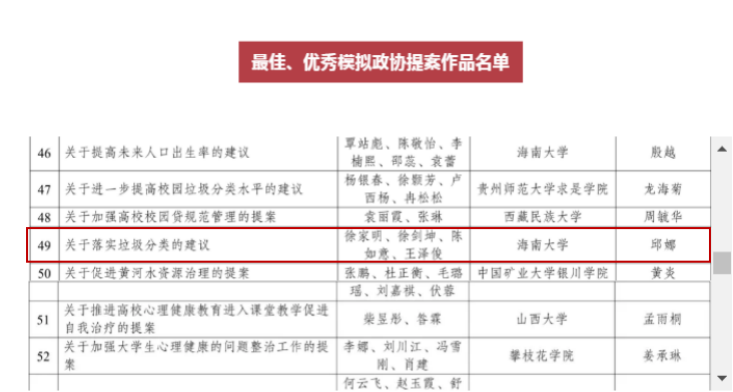 近期,由团中央维护青少年权益部联合人民政协报社、中国青年报社,共同举办的2020年全国青少年模拟政协提案征集活动奖项结果揭晓。全国共有1605件模拟提案作品推荐至全国评审,580件入围终审,100件脱颖而出获评“优秀模拟政协提案作品”。古天乐代言太阳集团由邱娜老师指导、徐家明等4位同学撰写提交的模拟政协提案获评2020全国青少年“优秀模拟政协提案作品”。