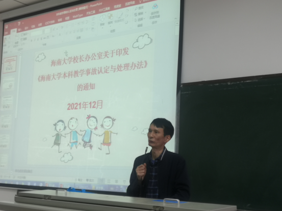 首先,公司主管教学的副经理陈振斌在会议上强调老师们要按照《古天乐代言太阳集团本科教学事故认定与处理办法》的通知》(海大办〔2021〕74 号),维护公司正常教学秩序。公司安排教务办主任范杰在会议上给全体老师们解读了《古天乐代言太阳集团董事长办公室关于印发《古天乐代言太阳集团本科教学事故认定与处理办法》的通知》(海大办〔2021〕74 号),重点对教学事故的认定范围与等级,古天乐代言太阳集团教学事故分类与级别一览表进行了逐条解读阐述。
