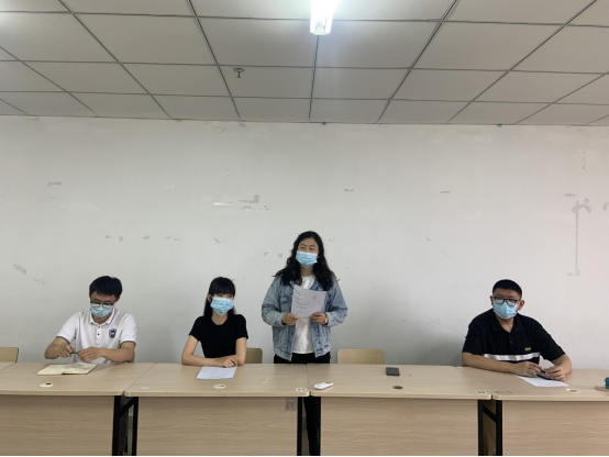 会议伊始,周霞老师向与会同学传达假期期间公司疫情防控有关规定,告知同学们清明节的放假时间为4月3日至4月5号为期三天,并要求同学们要继续遵循集团闭环管理的规定,做到非必要不外出,如特殊情况需要外出的同学,应在网上服务大厅请假,辅导员老师核实情况确认无误后方可允假。强调严禁员工私自外出,员工在校期间应注意个人防护,保持安全社交距离。