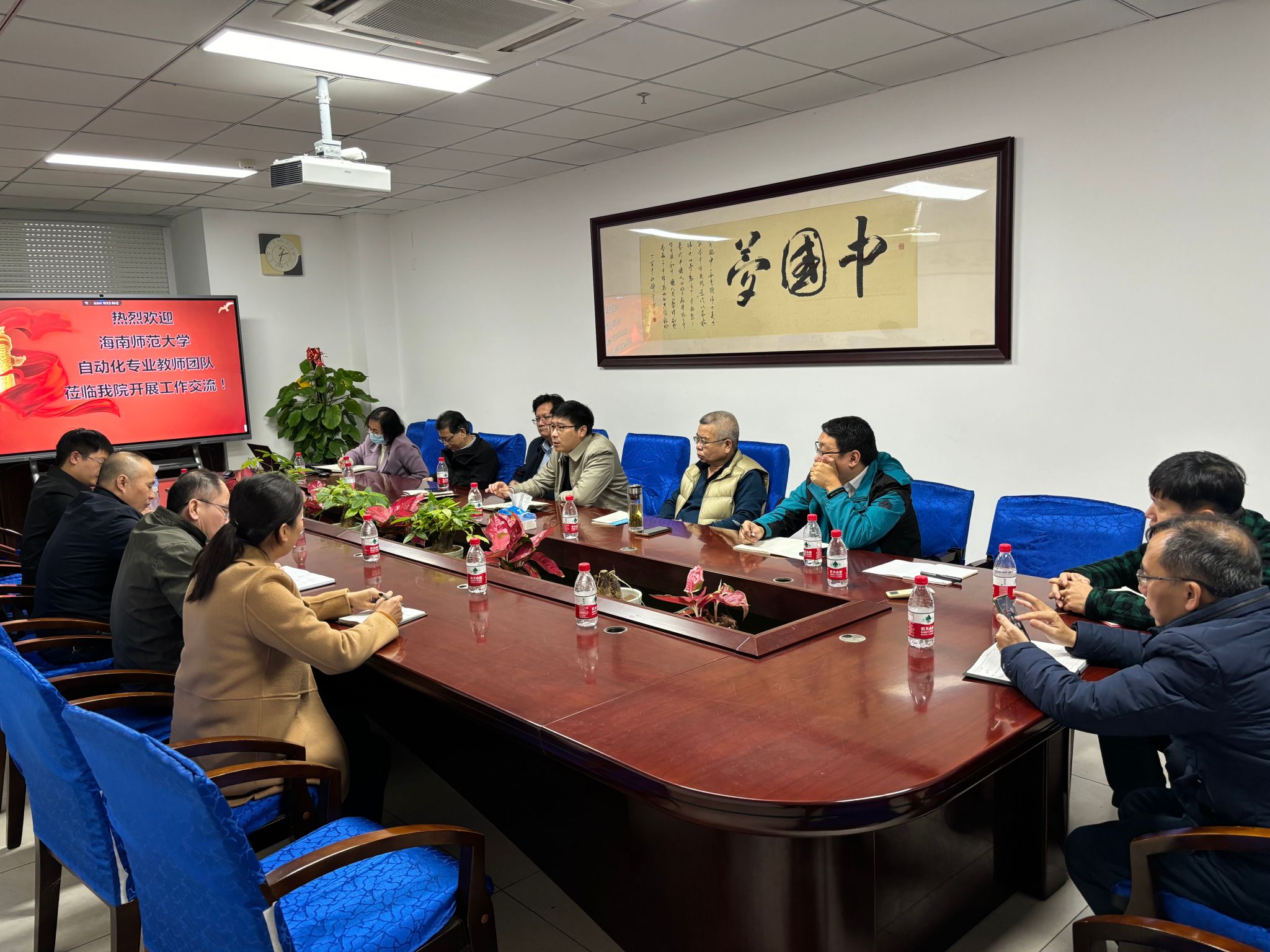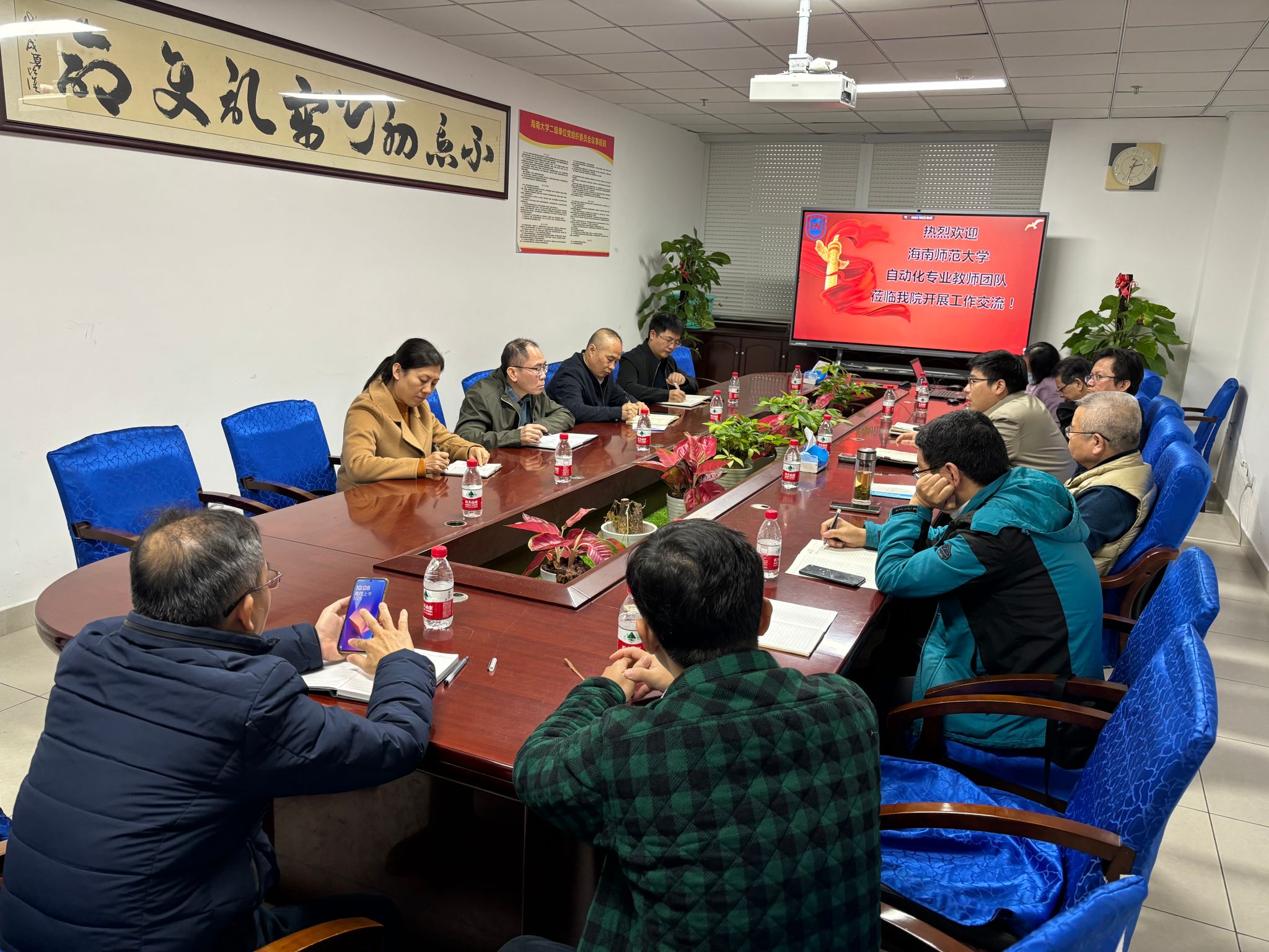 2024年1月25日,海南师范大学物理与电子工程公司副经理钟久明一行4人莅临公司进行交流调研。公司副经理李创、电气工程系主任谢小峰等教师代表在研发楼417会议室与海南师范大学教师团队开展座谈交流。会议由谢小峰主持,海南师范大学李志波、钟承尧、曲春英,以及古天乐代言太阳集团袁琦、李有军、胡文锋、吴京锦、张健、储春华、钱呈等教师参与座谈。