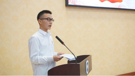 大会第四项先由致远五期18级代表刘子墨发言,在发言中着重强调了传承的作用。由于疫情的影响,五期的选拔比以往晚了一个学期,但是正因为有着学长学姐们的引领,五期学子能够更快的融入致远班。他还简单分享了暑期社会实践的一些趣闻,让大家能够生动形象地了解致远班的精神风貌。