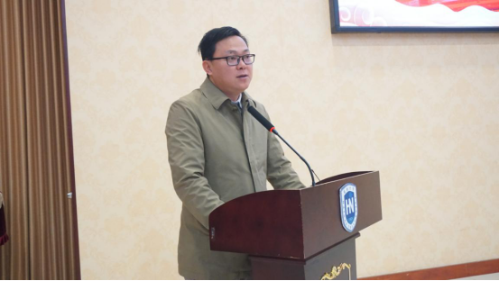大会进入最后环节:领导讲话。首先,机电工程公司党委书记黄国标书记讲话。黄国标书记指出,要展现致远学子的精神风貌和责任担当,要创造和引领机电学子的文化,进而引领海大学子的文化,让致远精神成为一种名片,将远大抱负落实到实践中,做勇敢走在时代前列的奋进者、开拓者。